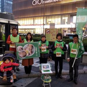 難波高島屋前では、大谷選手のニュースを見て来ていただいた方もおり、「ニュースで見たので来ました」と募金していただいた方が何人もいました。